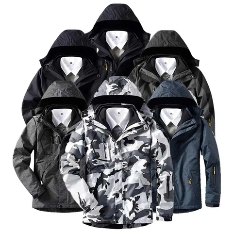 2025ชุดกีฬากันความร้อนของผู้ชายเสื้อแจ็กเก็ตแขนยาวมีฮู้ดสีบล็อกมีกาวมีซิปชุดสองชั้นพิมพ์ลาย