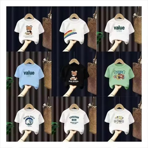 เสื้อยืดผ้าฝ้ายสำหรับเด็กผู้ชายและเด็กผู้หญิงเสื้อยืดแฟชั่นพิมพ์ลายสำหรับเสื้อผ้าเด็กสไตล์ฤดูร้อนใหม่