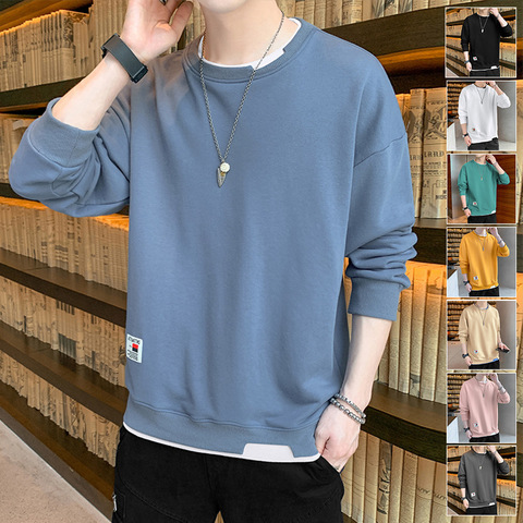 เสื้อสเวตเตอร์แบบสวมหัวของผู้ชายขนาดใหญ่มีฮู้ดและสเวตเชิ้ตคอกลมลายพื้นสองชั้นสำหรับฤดูใบไม้ผลิ